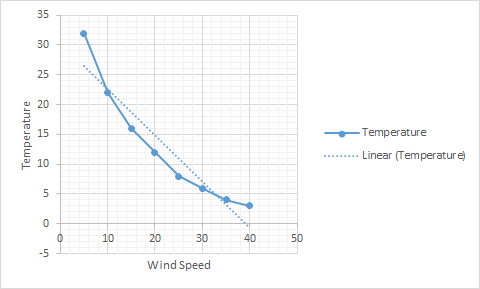 Temperature = w1 * Wind-speed + Bias